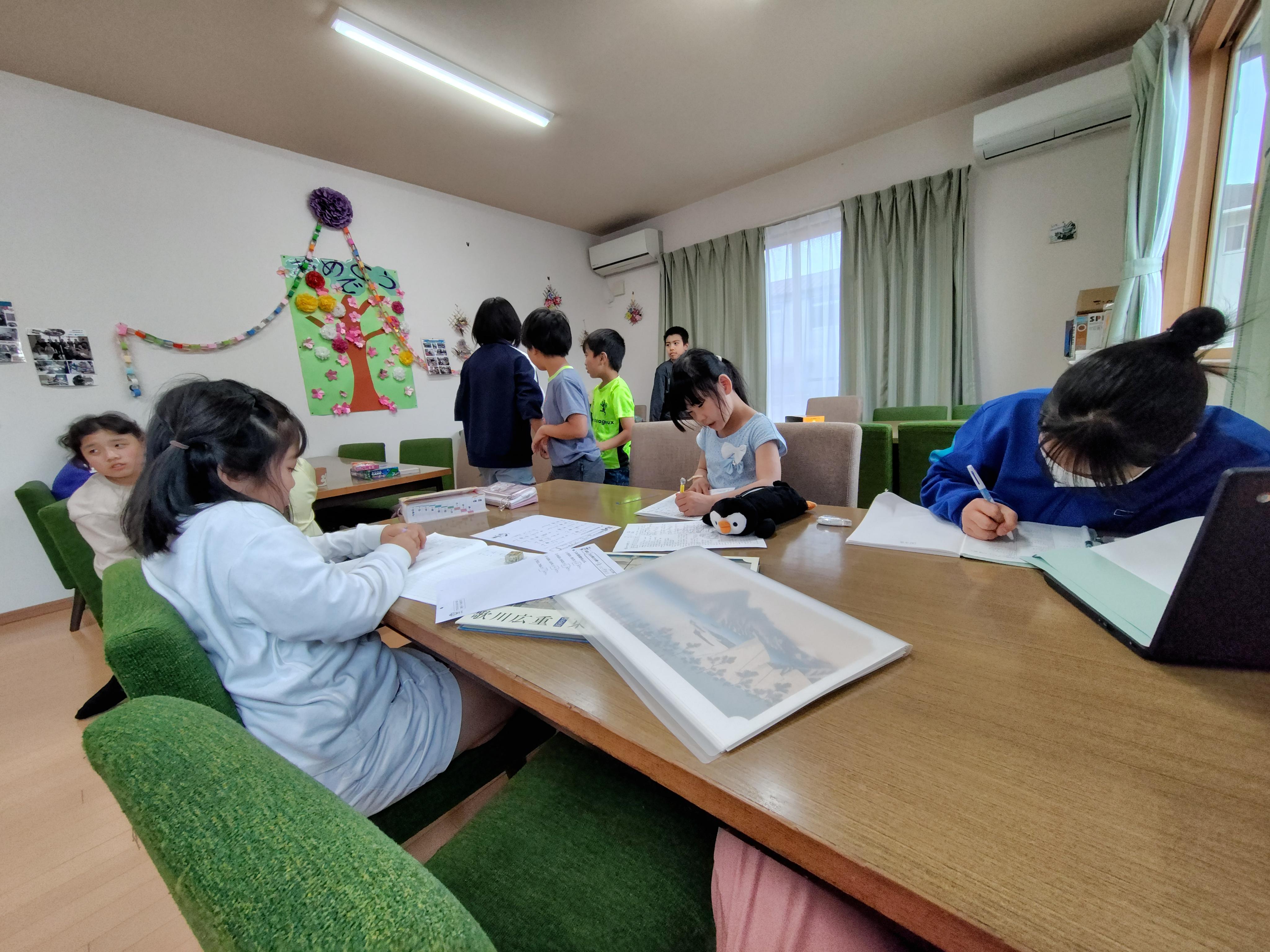 学習習慣が定着するように、スタッフによる宿題指導を行なっています。分からないところまで遡った学習支援に加え、座っていられない等の課題がある子どもは情操面や発達障害の可能性も考慮して支援します。